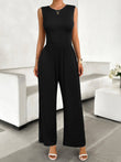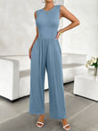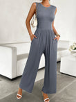 Round Neck Sleeveless Wide Leg Jumpsuit