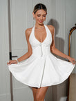 Flirty, elegant, and fun, this Halter Neck Mini Dress is your new go-to for nights out or stylish summer events. It features a plunging neckline, flared ruffled hem, and an adjustable lace-up back for the perfect fit.