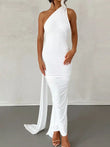 Backless One-Shoulder Ruched Bodycon Maxi Dress
