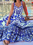 Full Size Printed Sweetheart Neck Maxi Cami Dress Plus Size