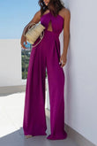Halter Neck Wide Leg Jumpsuit with Keyhole Detail