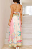 Make a statement this season with our Printed Halter Neck Maxi Dress – the perfect mix of playful and elegant. Designed with a halter neckline, side cutouts, and a backless tie detail, this dress is made for warm days and stylish getaways.