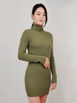- Ribbed, Turtleneck, Long Sleeve, Slim Fit, Mini Length Dress
